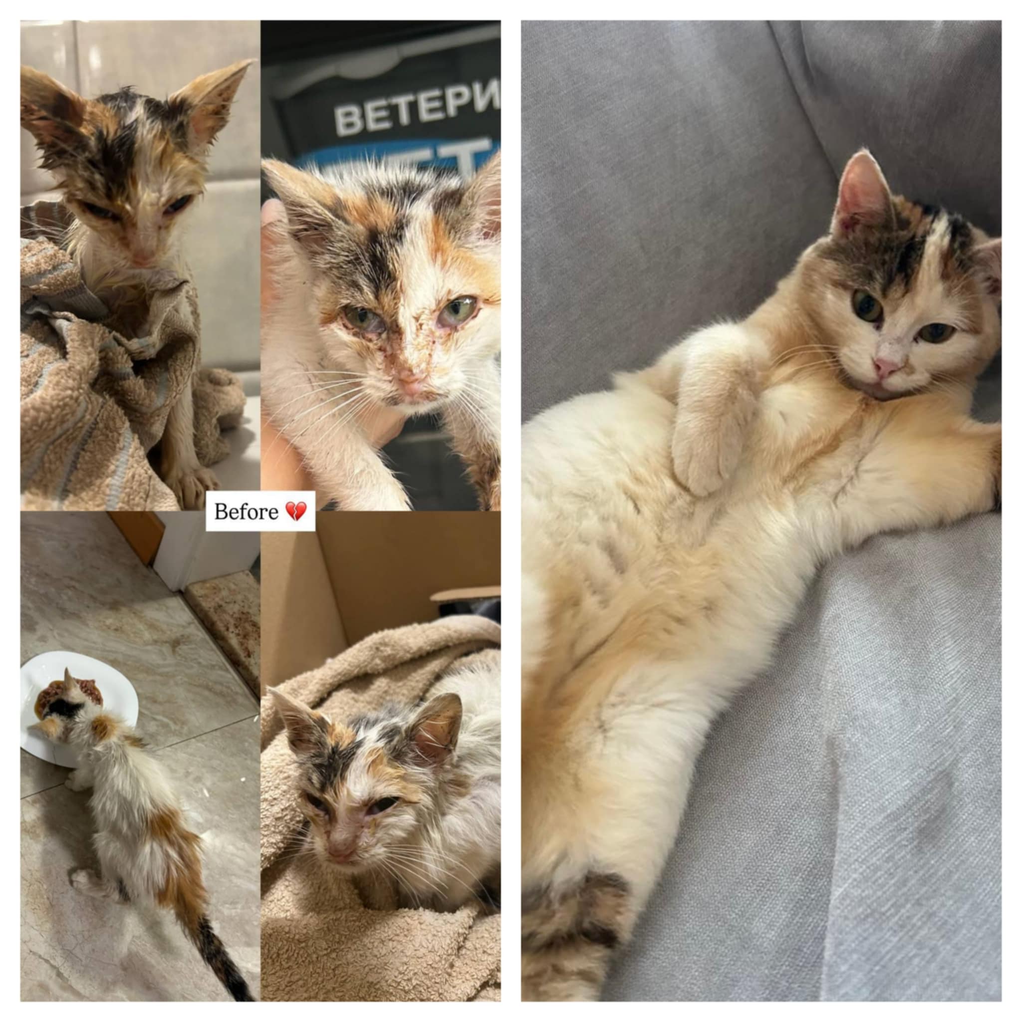 After two months of strict quarantine in Slovenia due to the fungal infection, along with patience, treatment, and endless affection, Dalila is today a healthy, happy, and incredibly beautiful cat, living in a warm home where she is deeply loved.