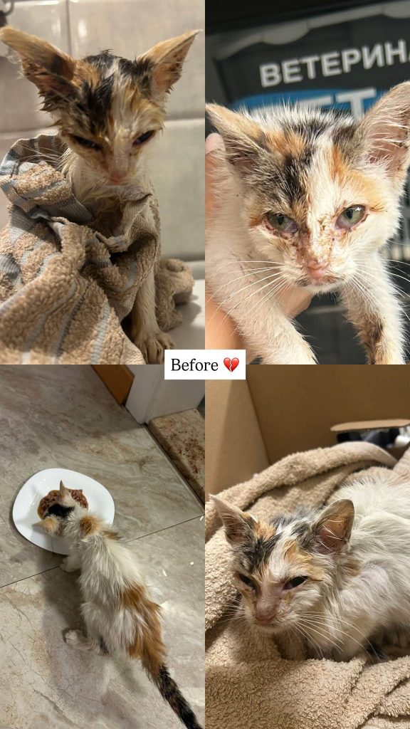 One September day in Ohrid, on the scorching asphalt, a tiny kitten lay alone—abandoned, severely dehydrated, and critically ill. She was nothing but skin and bones, starving, infested with worms, suffering from a serious upper respiratory infection, with badly infected eyes. Later, she was also diagnosed with microsporia, a contagious fungal infection.