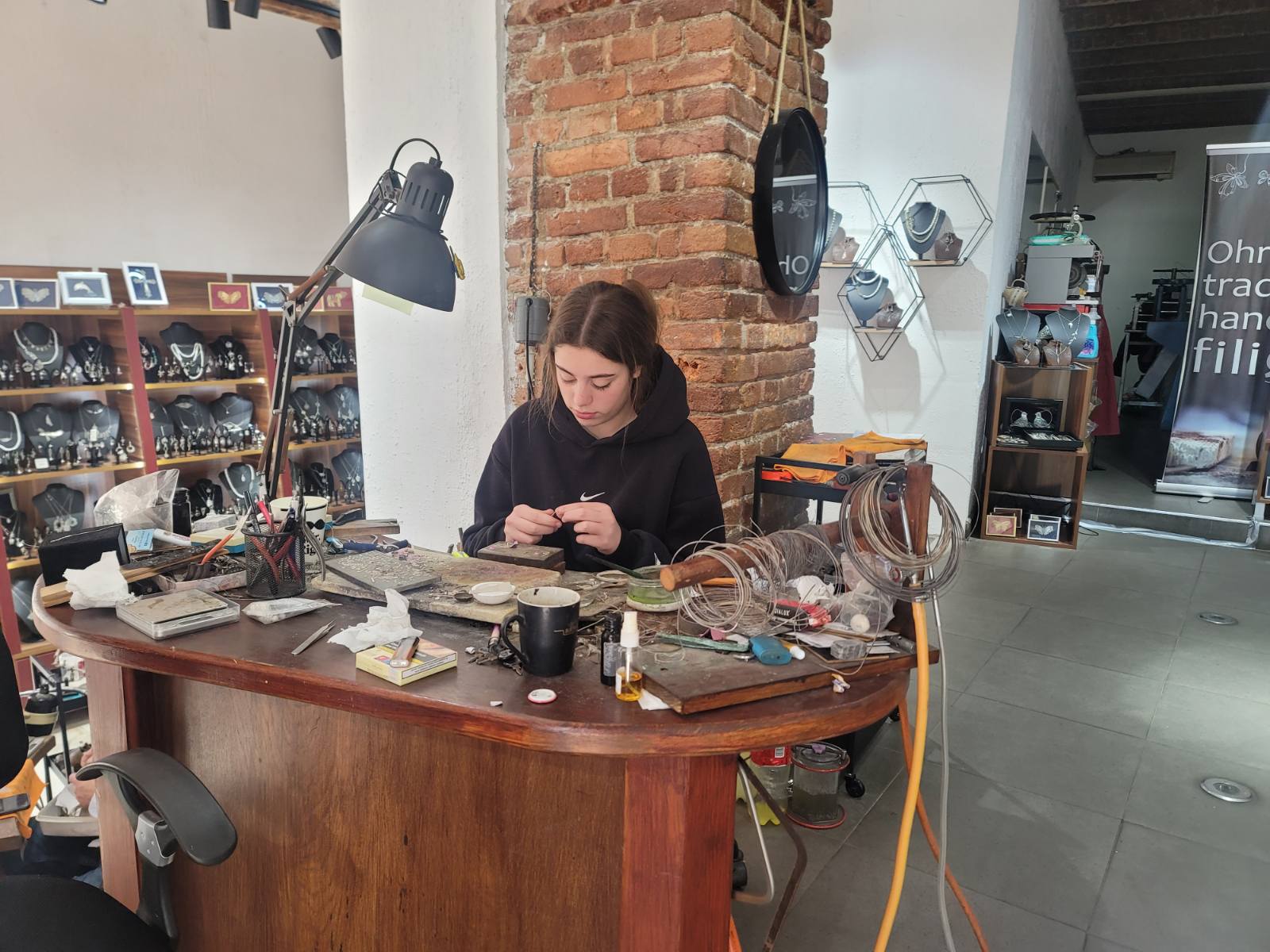 Започнав уште како мала, заедно со мајка ми правевме производи со свилени  конци изработувавме  слики. Тука во мене се разви љубовта кон уметноста. подоцна мојот сопруг беше иницијатор да го изучам занаетот. Учев во Скопје изработка на филигрански накит како примарна техника на моето ателје, а потоа продолжив и со други обуки за други техники изработка и на сребро и на злато. Правам накит, претежно за жени, но и за мажи. Имаме побарувачка. Во нашето ателје филигранската изработка започнува од сребро во гранули кое се топи, па се извлекува жица, што е еден од потешките процеси. Најтенката жица е 0,2 мм и со неа се плетат сите внатрешни елементи. Во поново време во накитот вметнуваме она што е највредно во нашата земја, а тое е скапоцениот камен рубинот од Македонија,  со што ја зголемуваме вредноста на овој филигрански накит. Веќе неколку години воведовме и Filigree experience, односно нашиот купувач може да избере парче накит по желба може и да го нацртаме и заедно го изработуваме. Сме имале интересни случаи доаѓа купувач, кој сака да ја запроси својата сакана па сам го изработува вереничкиот прстен.